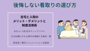 自宅介護の場合、住み慣れた家で安心して過ごせるというメリットがありますが、家族の負担は大きくなりがちです。